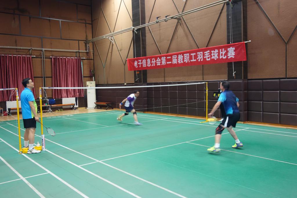 本次比赛为混合团体赛,设置了男子单打、女子单打、混合双打等项目。赛场上,运动员们顽强拼搏、激烈角逐,用淋漓的汗水诠释着他们对于激情、快乐和健康的理解,印证着电子信息人逢一必争、遇冠必夺的拼搏精神。他们时而网前挑球,时而后场扣杀,各种竞赛场面层出不穷,他们潇洒的挥舞着球拍,展现着精湛的球技,演绎着属于自己的精彩。担任本次比赛裁判员的王欣和吕昕两位老师,严肃、认真、公正、准确,礼貌敬业,使整场比赛得以顺利进行。