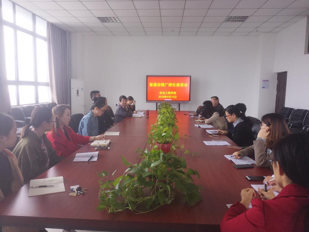 为进一步宣传《中华人民共和国国家通用语言文字法》,发挥普通话推广过程中学校的优势作用,9月19日下午,机电工程学院在会议室召开普通话推广工作师生座谈会。师生代表20余人参加了座谈会。鸭脖党总支书记张雅兰参加并讲话。