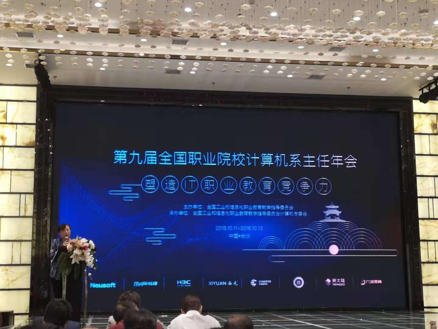 10月11至13日,由全国工业和信息化职业教育教学指导委员会主办、全国工业和信息化职业教育教学指导委员会计算机专委会承办的第九届全国职业院校计算机系主任年会在湖南长沙举行,共有来自全国200所职业院校的500多人参加,电子信息学院院长孙津平、软件技术教研室主任朱金坛以及计算机应用技术教研室主任都娟参会。