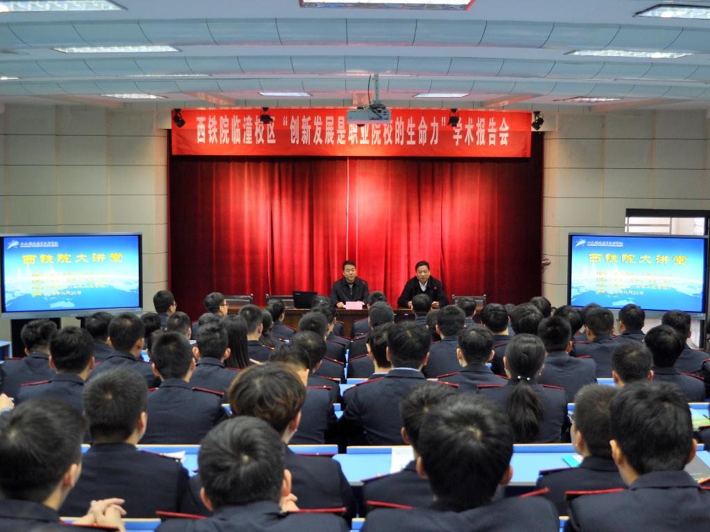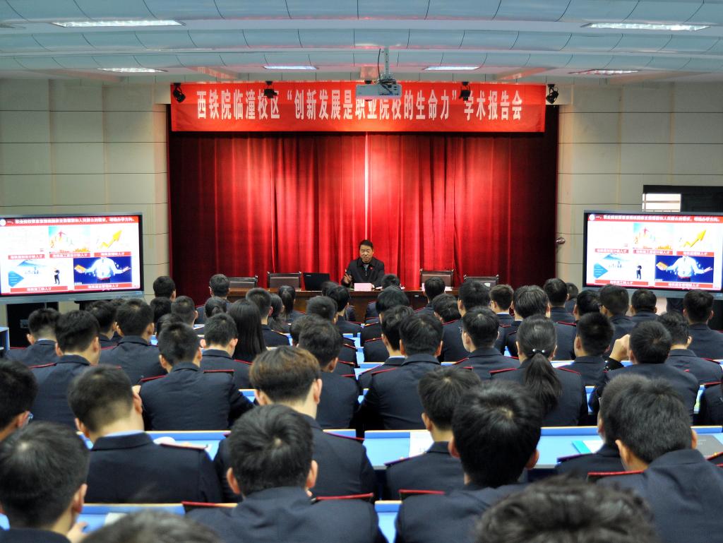 11月20日下午,临潼校区以yabo鸭脖官网大讲堂为平台,邀请学院副院长安学武(高级工程师)为校区师生作了题为“创新发展是职业院校的生命力”的学术报告。校区副主任王秀丽、教务科科长丁敏旭,铁道工程技术、高速铁道工程技术、城市轨道交通工程技术等专业师生共150余人聆听了报告,报告会由校区主任熊奇主持。