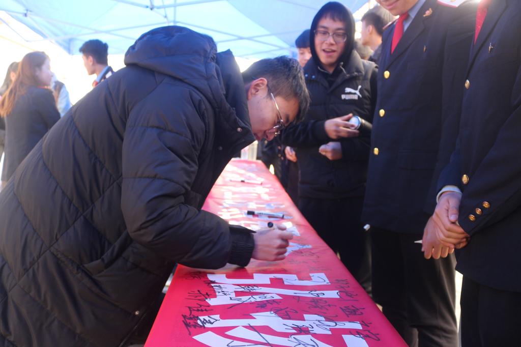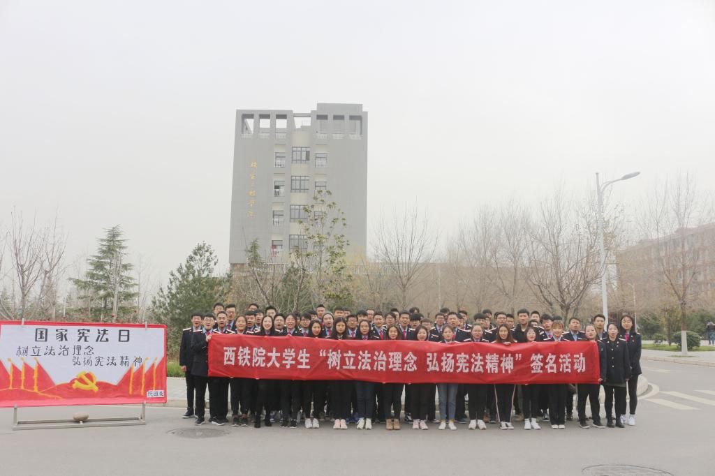 本次活动以宪法为核心的法律法规宣传教育为主线。同学们在餐饮中心门口向过往师生们发放了普法宣传单,普法宣传单从宪法在我国法律体系中的地位、基本内容、国家宪法日的由来、设立国家宪法日的重大意义以及宪法宣誓制度等方面进行了全面的解读,向学院师生普及宪法知识,弘扬宪法精神。同时,港务校区众多师生在“树立法治理念 弘扬宪法精神”的宣传横幅上庄重签下自己的姓名,共同倡导践行“学法、懂法、尊法、守法”,形成弘扬宪法精神、建设社会主义法治中国的良好氛围。