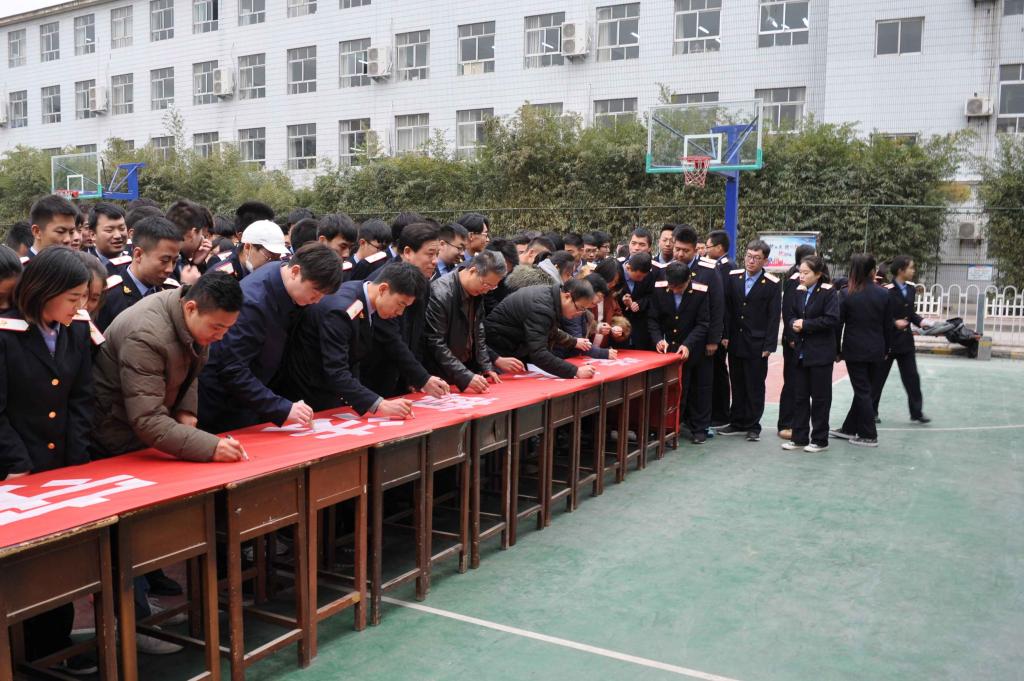 活动首先进行了宣誓仪式,到会全体师生举起右手,进行了庄严的宪法宣誓,全场宣誓声音铿锵有力、气势磅礴,充分展现了校区师生忠于宪法、遵守宪法、捍卫宪法的坚强决心和坚定信心。随后,学生代表向在场师生做出倡议,号召校区广大青年学子主动学习宪法,广泛宣传宪法,不断巩固对宪法的忠诚与信仰,提高法律意识,增强法治观念,为建设法治中国、建设法治西安贡献力量。最后,全体师生在“学法、尊法、守法”的签名横幅上庄重地签上了自己的名字,作出了学习宪法、尊崇宪法、遵守宪法、维护宪法权威的郑重承诺。