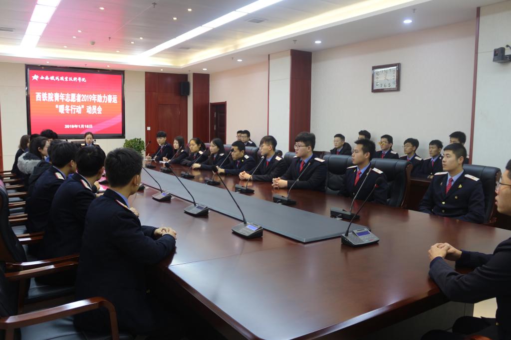 1月15日,院团委召开2019年青年志愿者助力春运“暖冬行动”动员会,院团委副书记张治平、团委老师与60余名青年志愿者代表参加本次动员会。