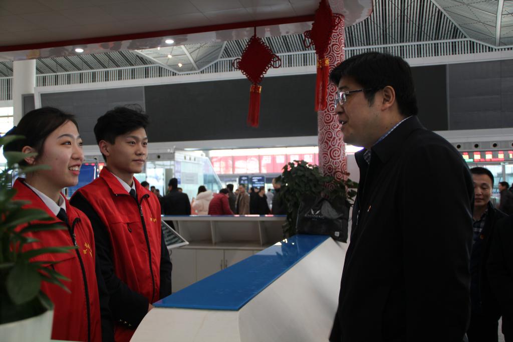 启动仪式后,与会领导观看了暖冬行动“快闪表演”活动。鸭脖团委前期精心编排的三个节目作为特邀节目参与了启动仪式的快闪表演。随后,领导们来到志愿者之家、馨动长安服务台、书香候车室、检票口等服务点慰问志愿者,与正在岗位上热情服务的鸭脖志愿者们进行了交流、合影。鲁镇、杨修昌等领导对鸭脖志愿者们所表现出的奉献精神和优良风貌给予了充分肯定,并希望志愿者们能够不怕苦、不怕累,尽快熟悉岗位职责,积极主动、服从安排、认真负责,通过志愿服务充分展现我省青年学子的良好精神风貌。