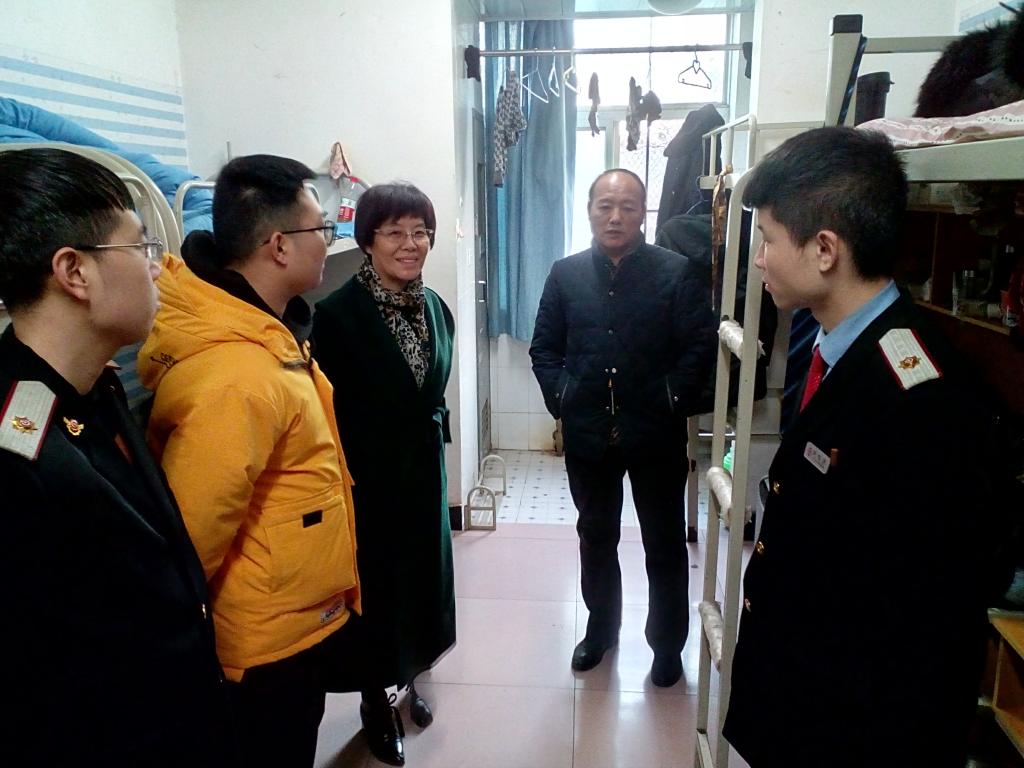 和晋秦深入师生宿舍了解实习学生的生活、工作等全面情况,并送上节日的祝福。在充分肯定前期实习工作的同时,关切叮嘱学生:一是要不断强化安全意识,生活中注意用电安全,工作中遵守操作规程,确保自己和旅客的人身及财产安全,保证行车安全;二是要保持优良作风,发扬吃苦耐劳精神,克服困难,做好应对春节期间旅客高峰和天气寒冷的准备;三是加强学习,加强锻炼,不断总结,提高自己的综合素质,增强服务意识,为旅客提供优质的服务,展现西铁学子良好的精神风貌;四是要充分利用车厢这个大的宣传平台,做好宣传工作,宣传党的路线方针政策,宣传鸭脖;和晋秦还要求带队老师要坚守岗位,加强学生的教育管理,帮助学生解决困难,以保证实习工作的顺利推进。