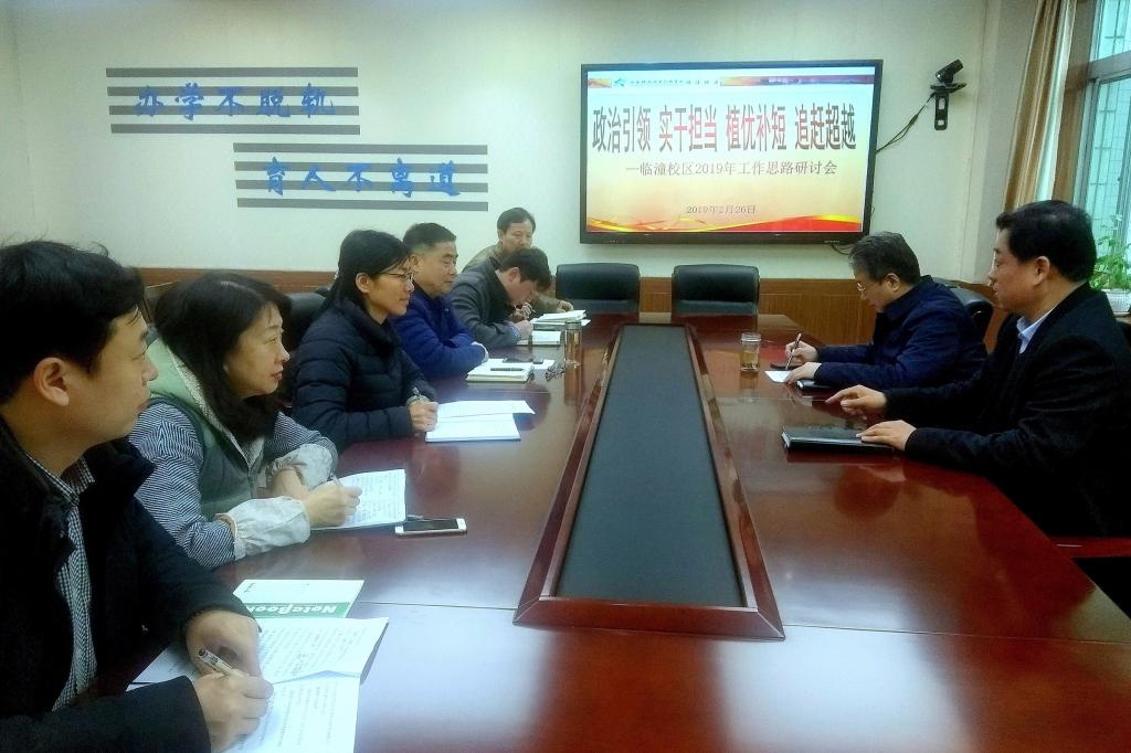 日前,临潼校区结合学院“讲政治、敢担当、改作风”专题教育,认真查摆校区工作短板,围绕学院创建国家优质高职院校和省级一流高职院校建设的中心任务,结合学院处级干部会议精神,召开了工作思路研讨会,全面谋划2019年工作,进一步理清工作思路,明确工作目标和任务,校区上下将团结凝聚、敢于担当、主动作为,确保目标任务完成,助推学院追赶超越。