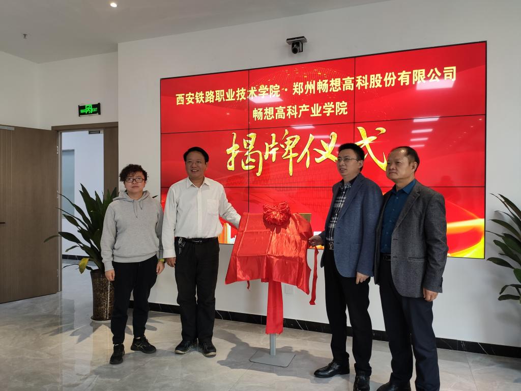 11月15日,继yabo鸭脖官网与郑州畅想高科股份有限公司签订校企战略合作框架协议、培训协议、产业学院共建协议、校企协同创新四个协议后,又在畅想高科公司隆重举行共建畅想高科产业学院揭牌仪式。畅想高科股份有限公司董事长冯献华、总经理张宪锋,yabo鸭脖官网牵引动力学院院长李益民教授、铁道机车专业带头人崔晶教授、动车组驾驶与维修专业带头人李冰毅、城轨车辆技术专业带头人马仲智出席揭牌仪式。出席揭牌仪式的还有畅想高科公司西北大区经理王晓宇、刘俊伟和呼和浩特职业技术学院铁道学院院长许瑞利、副院长王斌。