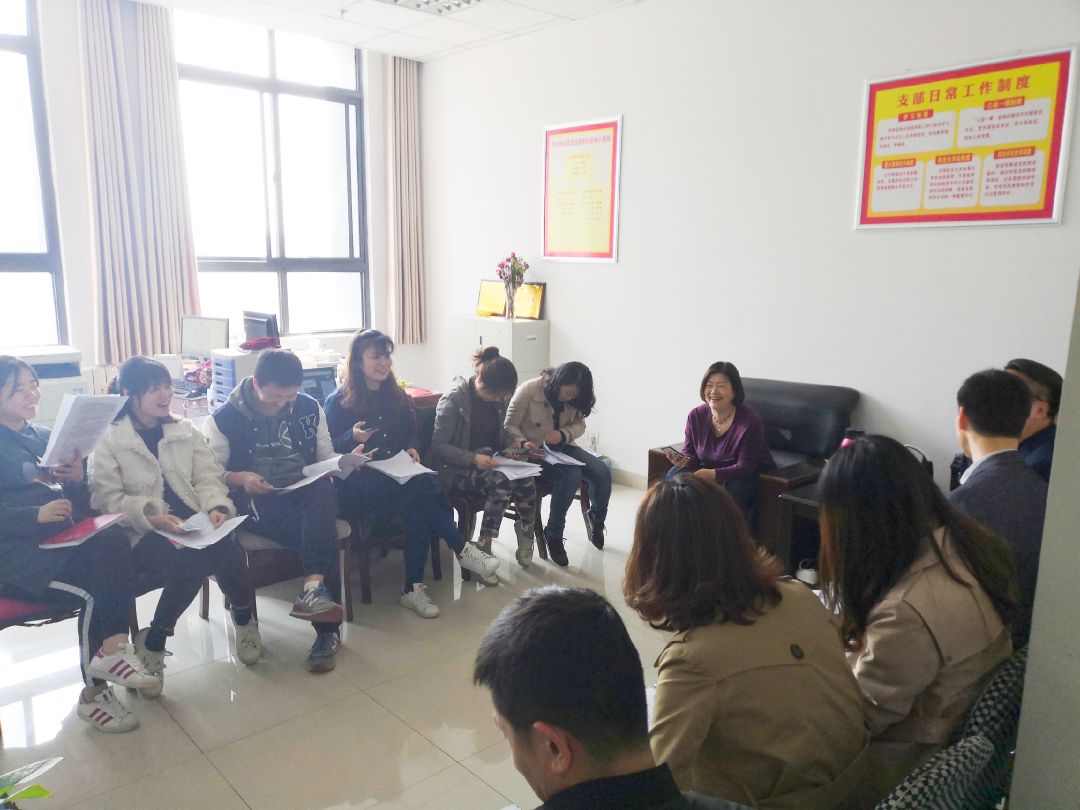 为全面落实党中央关于党员教育管理工作要在提高质量上下真功,增强针对性和有效性,切实防止形式主义,坚持“三会一课”、主题党日、集中培训等基本制度,使党员教育管理有力度有温度,加强改革创新,提高党员教育管理工作现代化水平的总体要求。4月3日下午,思政党支部在思政部办公室召开全体党员大会,开展“《中国共产党支部工作条例》知识竞赛”主题党日活动。本次活动由思政党支部书记赵建英主持。