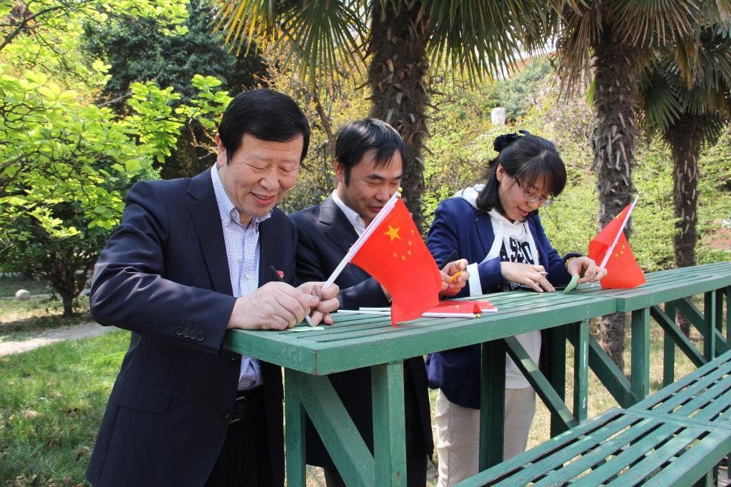 “我和我的祖国,一刻也不能分割,无论我走到哪里,都流出一首赞歌……”,4月4日中午,《我和我的祖国》这首优美动人的旋律在自强校区詹天佑广场上空飘扬,这是yabo鸭脖官网交通运输党总支组织党员教师开展的特色主题党日的开场活动。此次主题党日活动分合唱、总支书记提寄语、党员代表亮决心、全体党员签名承诺、重温入党誓词、合影留念六个环节,旨在贯彻落实党的十九大“不忘初心、牢记使命”的要求,引导党员强化党性观念,增强“四个意识”、坚定“四个自信”、做到“两个维护”,在新时代更好地发挥高校教师党员的先锋模范作用,踏踏实实做大国工匠的筑梦人。