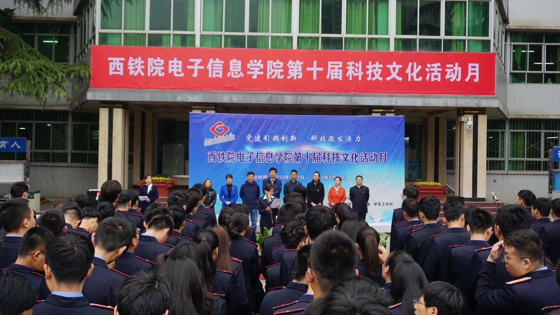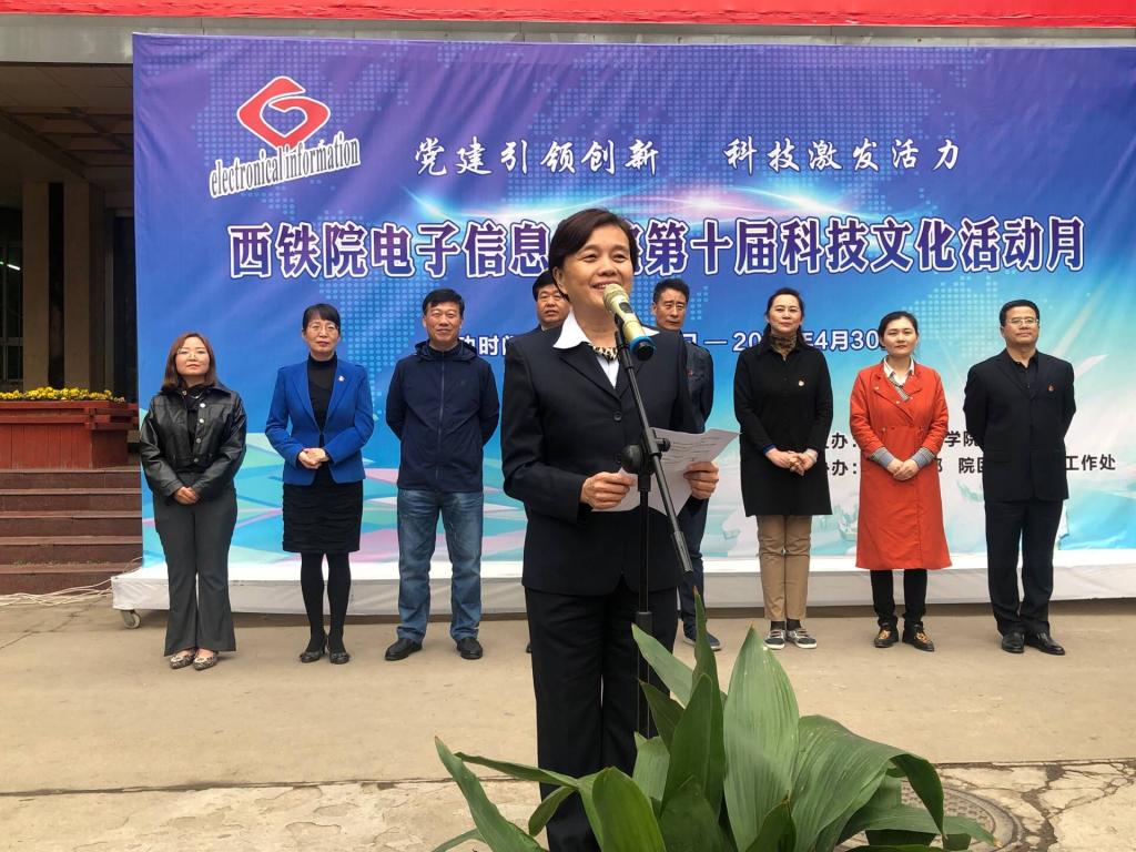 4月10日下午,电子信息学院“党建引领创新 科技激发活力‘第十届科技文化活动月’”开幕式在自强校区詹天佑广场举行。慧科集团中西部校区运营总经理杨小溪、慧科集团陕西校区运营中心主任刘永霞、自强校区综合管理处处长杨稳利、副处长马建萍、继续教育学院院长司西平、副院长许晓华,招生就业办公室副主任吴西蒙,电子信息学院院长孙津平、党总支书记张伟敏出席开幕式,电子信息学院办公室主任马荣主持开幕式,全体教职工和学生参加。