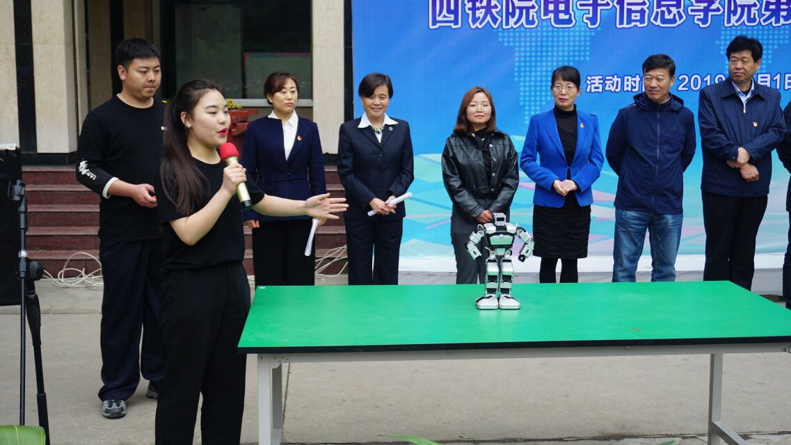 开幕式上,大数据学院的学生还展示了他们正在研究开发的一项工程——Yanshee机器人,为大家带来了精彩的表演。