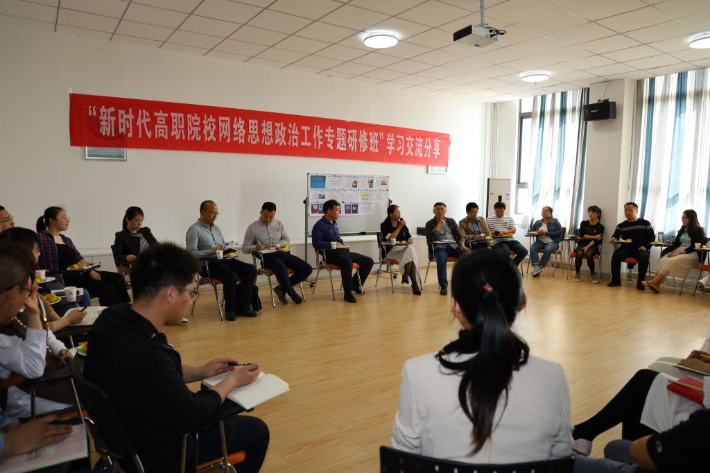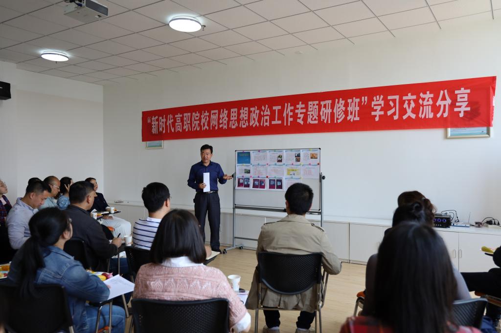 会上,学工部副部长高阿联首先向大家交流了“新时代高职院校网络思想政治工作专题研修班”四位网络思政知名专家南京航空航天大学的徐川、天津师范大学的张家玮、福建师范大学的陈志勇、重庆大学的袁利所做的专题报告,就报告中提及的“三个真心”指导思想、“六扇门”工作法、用00后的思维对话00后、品牌形象建设、“五小工作法”、“五心级工作”、经典案例等内容进行了详细解读,并谈了自己的四点学习体会。他说要做一名优秀的思政教育工作者,成为有作为的辅导员,就要像四位专家那样,一要“心中有大爱”,即爱国家、爱组织、爱青年、爱岗位;二要“手中有平台”,紧跟时代,充分利用网络媒体开展思想教育工作;三要“追梦不等待”,扎根辅导员工作,十几年如一日,初心不改,努力奋斗;四要“成功在八外”,利用好八小时工作外时间,自主学习,积极提升自我,这是辅导员成功的关键。他说,在下阶段工作中,一是辅导员培训应向名师大家靠拢、向优秀榜样聚焦;二是学生工作要紧扣青年特点,主动占领网络意识形态高地,体现青年在哪里辅导员就在哪里;三是要在学生中厚植爱国主义情怀,做到祖国在哪里辅导员就在哪里 ;四是要专注做事,落实岗位在哪里事业就在哪里;五是要主动读书,实现阅读在哪里积累就在哪里;六是要强化写作,体会总结在哪里经验就在哪里;七是要提升科研能力,达到研究在哪里成功就在哪里。