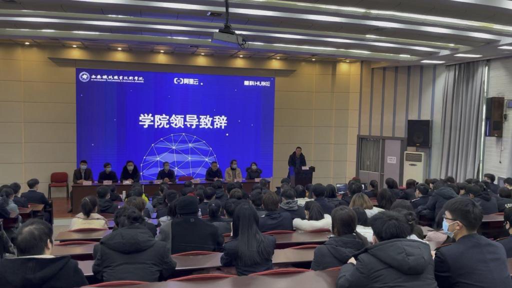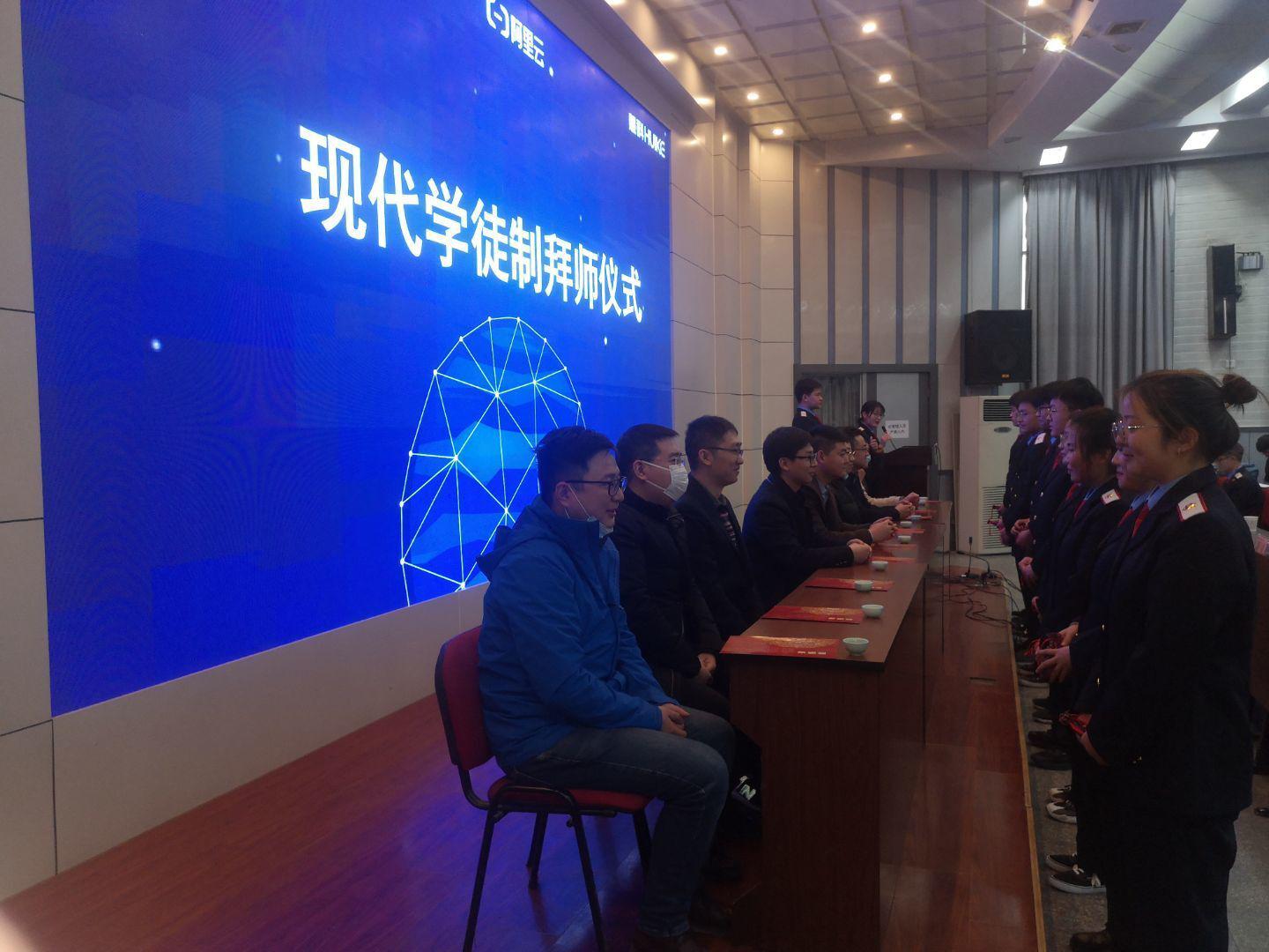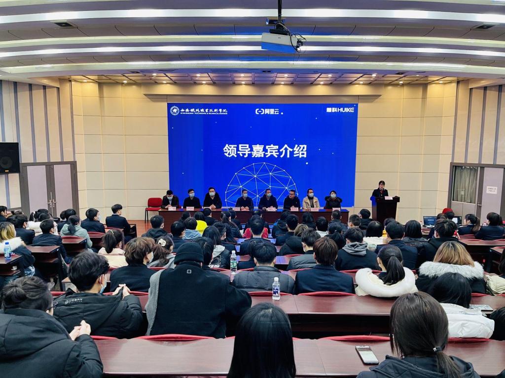1月7日电子信息学院阿里云大数据应用学院在自强校区阶梯教室举办“现代学徒拜师仪式”。电子信息学院党总支书记张伟敏、院长董奇、慧科集团陕西省总经理温伟东,西安超数智慧信息科技有限公司总经理张永佳、神州数码信息集成服务有限公司经理郭蓉,陕西陶于实业集团有限公司经理薛宏旺,慧科集团10位企业工程师及大数据教研室专任教师出席本次活动。