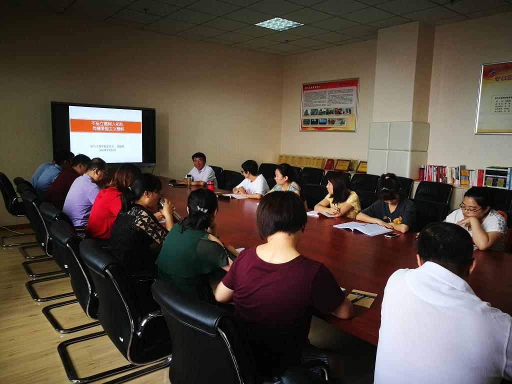 6月26日,电气工程学院党总支书记任建国以《不忘立德树人初心,传播爱国主义情怀》为主题,为总支全体党员上了一堂别开生面的党课。课程分为“国家兴衰与家庭幸福”、“国家命运与个人命运”两个部分,开篇一首耳熟能详的《国家》引发党员们思考国与家的关系,继而列举古今中外多个事例,阐述了国家富强方有家庭幸福之间的关系,让大家对家国情怀有了深刻的认识,对国家兴衰与个人的命运的关系有了新认识。最后任建国通过如何在教学中落实立德树人的根本任务提出了要求。