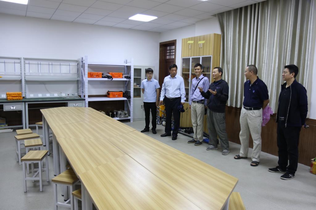 柳伟一行实地参观考察了校区高速轨道精调、铁路桥梁、铁路道岔、轨道探伤等实验实训室和铁路工务机具展示厅,在校区刘锋、高永刚、何宏斌等专业教师的演示和讲解下,详细了解了各个实训场地的布局和功能。
