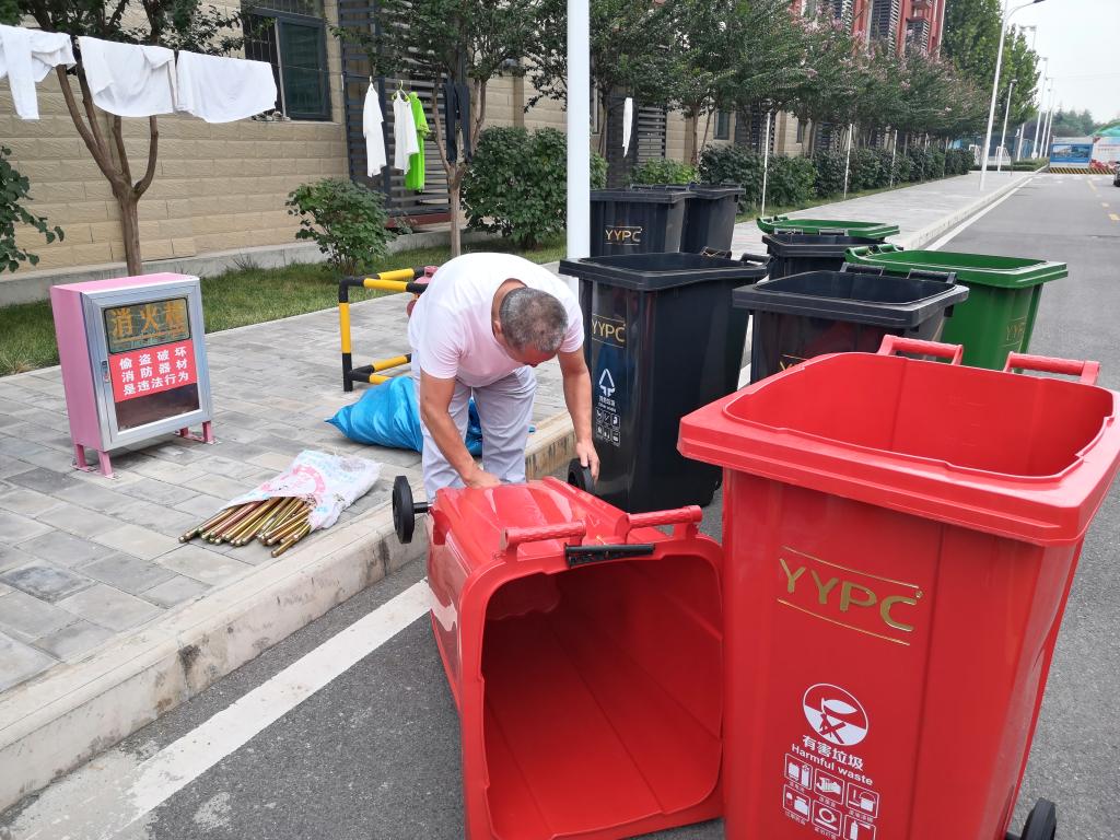 暑假期间,学院后勤服务中心对港务校区生活垃圾分类工作进行了具体安排,按照西安市统一要求,购置相应设施,确定安放位置,完成制度上墙。8月28日起,安排指导保洁公司张贴垃圾分类宣传海报,对第一批10组(4个/组)分类垃圾桶进行定位划线,安装摆放至指定地点。现教中心主任黄小明带领部门人员,协助进行垃圾桶定位划线。8月31日,后勤服务中心主任卢进安对港务校区生活垃圾分类工作准备情况进行了全面检查,要求保洁公司做好垃圾分类宣传教育、投放指导、及时清运等工作,根据实际情况及时改进工作方法。