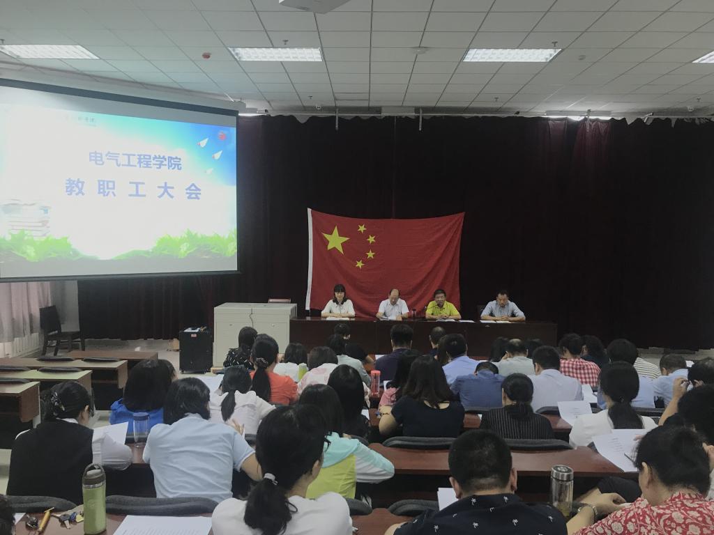 9月4日下午,电气工程学院全体教职工在阶梯教室召开新学期教职工大会,大会由学院办公室主任张秀红主持,学院全体教职工参加了此次会议。