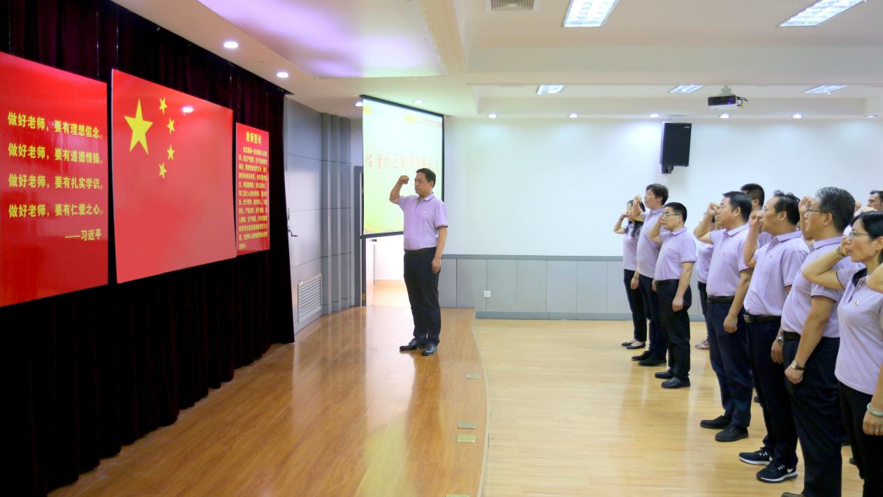 为庆祝新中国成立七十周年,贯彻落实陕西省教育厅《关于组织开展教师宣誓活动的通知》文件精神和具体要求,进一步激发校区广大教师投身教育事业的热情和干劲,9月5日下午,临潼校区举行全体教师集体宣誓仪式。学院副院长安学武、教师发展中心主任李贞伟出席活动,宣誓仪式由校区党总支书记张国邦主持。
