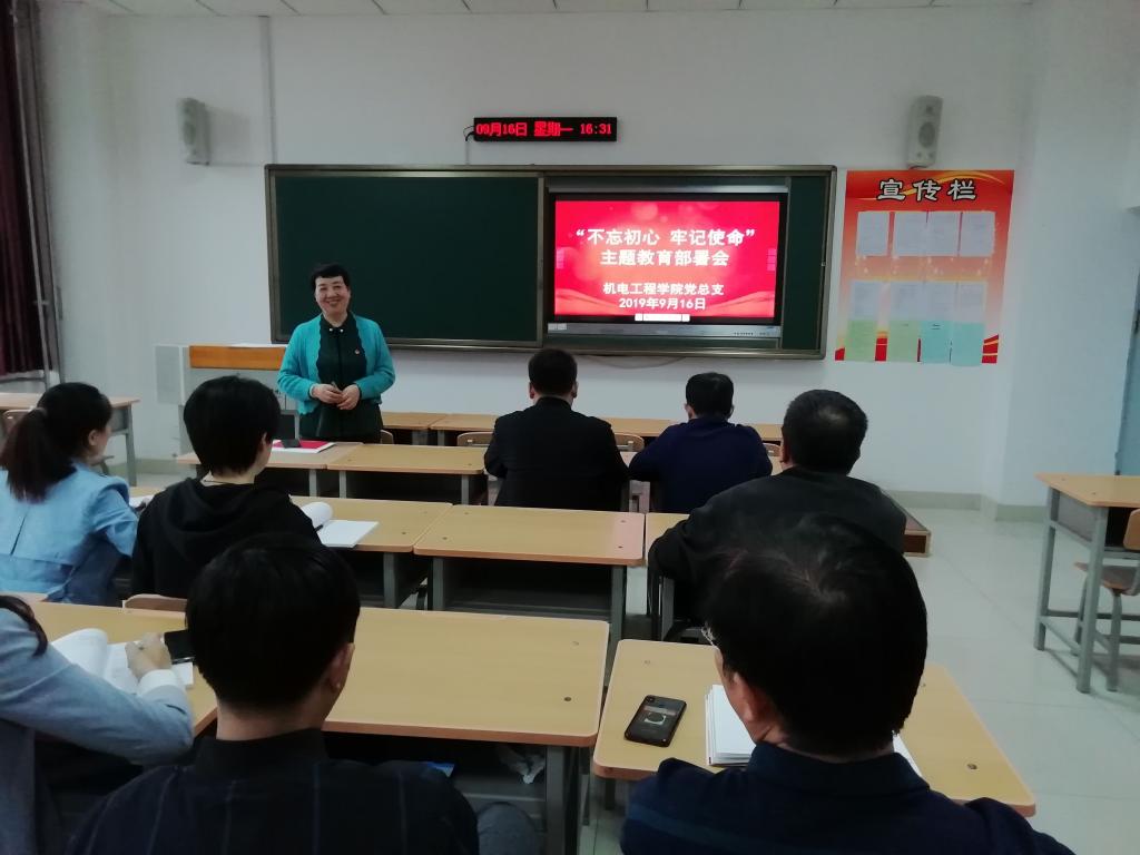 为认真贯彻落实学院党委有关“不忘初心 牢记使命”主题教育活动通知精神,营造浓厚的主题教育氛围,持续深入推进“两学一做”学习教育,9月17日下午,机电工程学院党总支在学院305教室组织召开了党总支委员扩大会议,党总支委员、所辖各支部委员参加了会议。党总支书记张雅兰主持会议并作了重要部署安排。