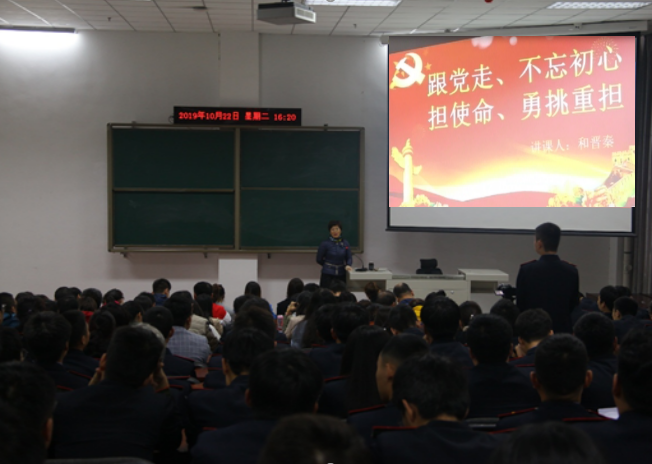 根据学院党委“不忘初心、牢记使命”主题教育工作安排,牵引动力学院党总支精心组织,党总支书记和晋秦于10月22日下午在牵引105阶梯教室,为全体教职工和学生入党积极分子200余人,主讲了“跟党走、不忘初心;担使命、勇挑重担” 专题党课。