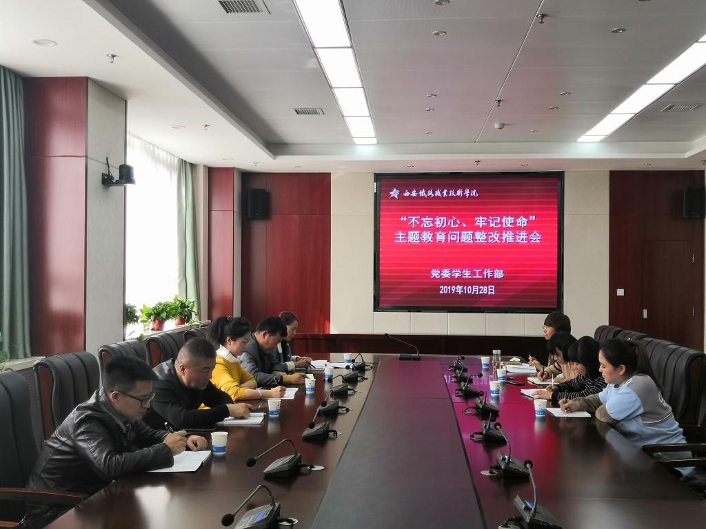 10月28日上午,党委学生工作部在学院办公楼五楼第三会议室召开“不忘初心、牢记使命”主题教育问题整改推进会,处室全员参加。