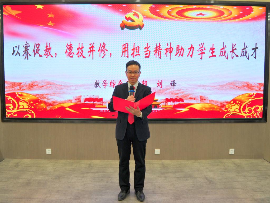 教学综合党支部党员刘锋做了题为“以赛促教,德技并修,用担当精神助力学生成长成才”的发言,用自己的亲身经历讲述了工程测量国赛“四连冠”背后鲜为人知的奋斗历程和辛酸故事。
