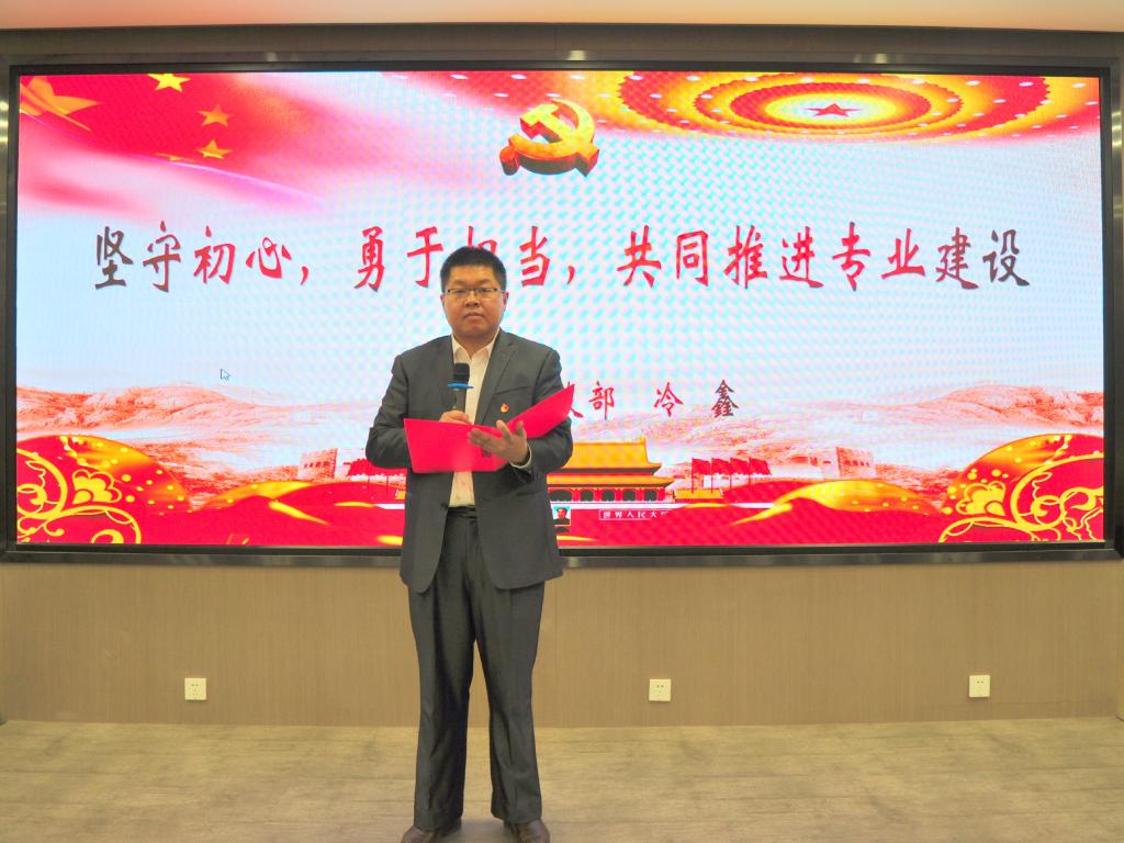 铁道工程党支部书记冷鑫以“坚守初心,勇于担当,共同推进专业建设”为主题,讲述了自己在专业建设和教研室工作中如何发挥出一名党员的先锋模范作用的动人故事。