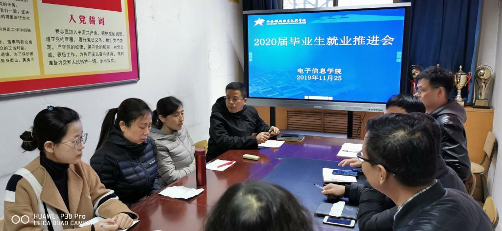 为扎实推进2020届毕业生就业工作,结合主题教育调研分析,11月25日,电子信息学院党总支书记张伟敏主持召开该院2020届毕业班辅导员、班主任就业推进会,就目前就业工作各班存在的问题及今后就业工作面临的实际情况,做了情况分析,明确了目标,落实了责任。