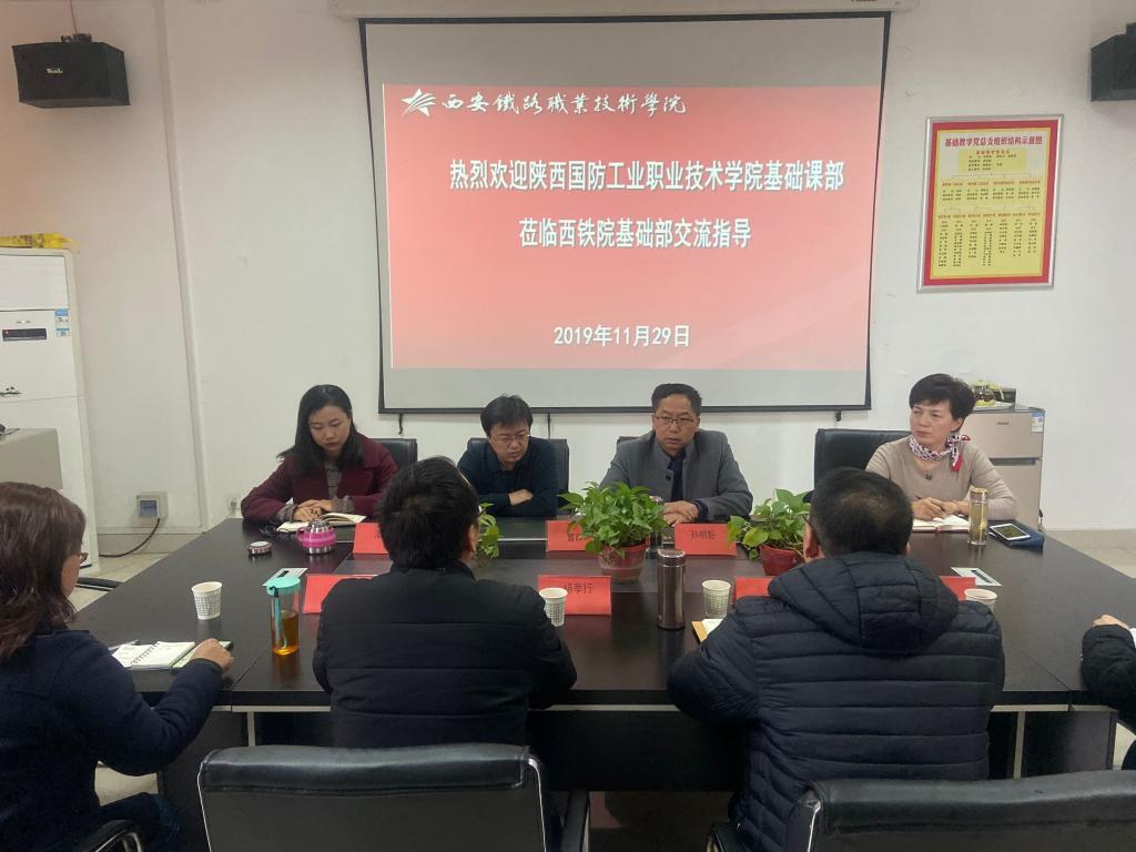 11月29日上午,陕西国防工业职业技术学院基础部杨文革主任一行4人前来鸭脖,就公共基础课教学与改革、数学建模、英语口语、文化艺术大赛的开展进行深入交流。鸭脖基础部主任孙明魁以及各教研室主任、副主任参加座谈。