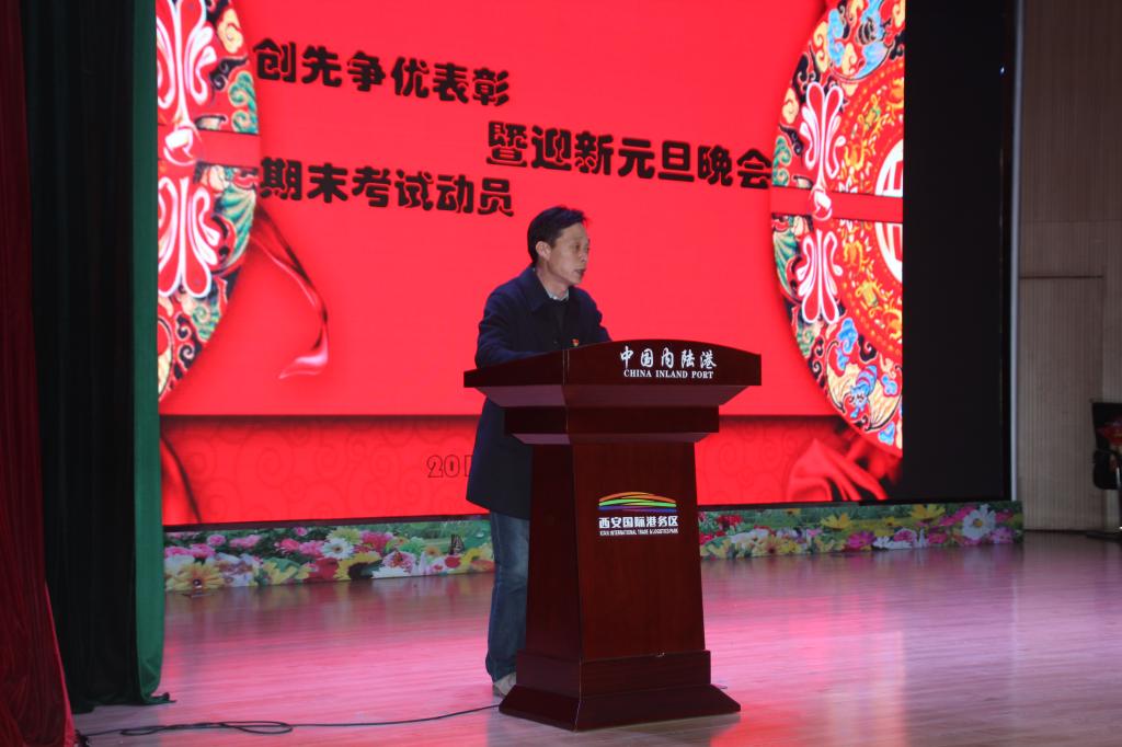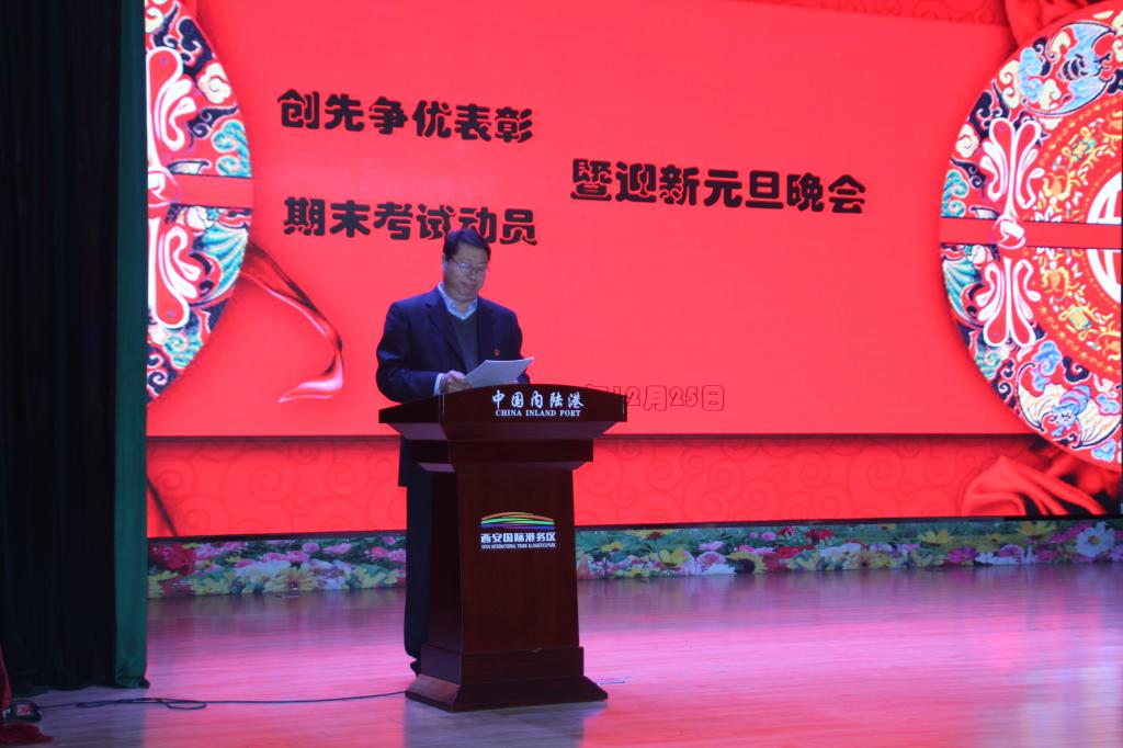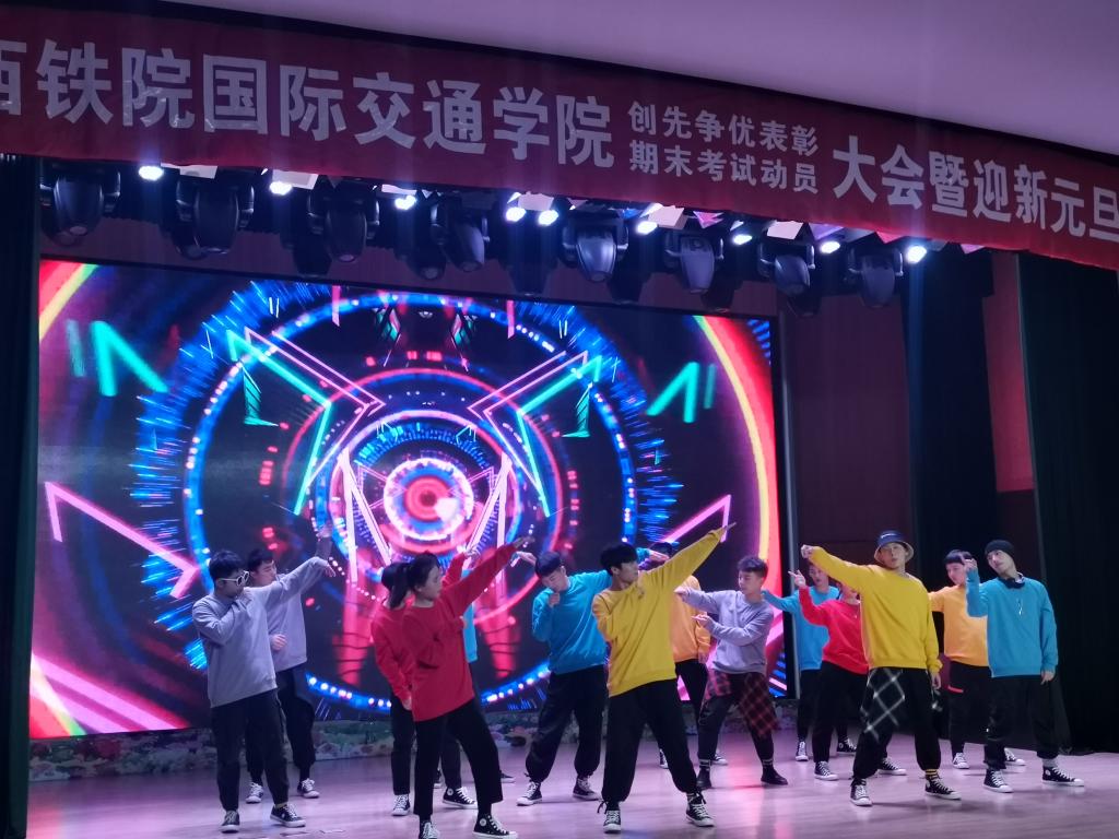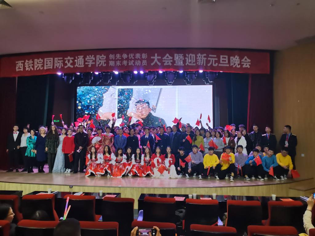 12月25日,国际交通学院举办“创先争优”期末考试动员大会暨迎新元旦晚会,院团委书记张治平、党委学工部副部长高阿联,国际交通学院院长赵景民、副院长韩发强,综合办公室主任、俄语教研室主任以及5名外教、辅导员、班主任以及全体学生带着对新一年的美好期盼欢聚一堂。