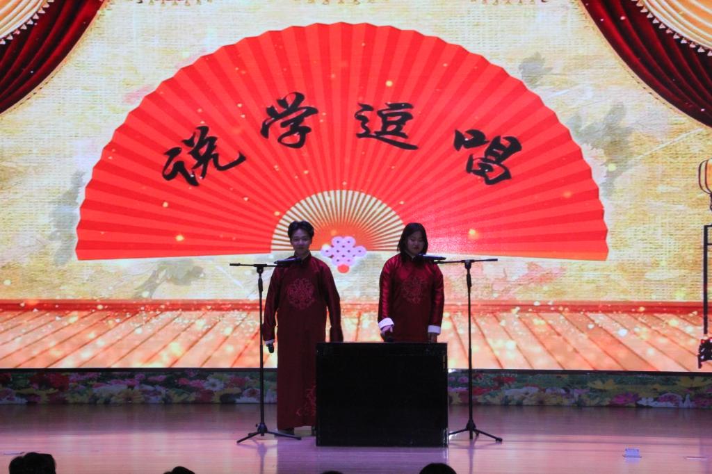 本场晚会共有十九个节目,激情的演唱、火热的舞蹈、风趣的相声、精彩的乐器演奏等各类节目轮番上映,让人眼花缭乱。整场晚会温情与火热并举,艺术表现形式多样,节目精彩纷呈:相声《说学逗唱》极具喜剧效果,用诙谐幽默的演绎表达了同学们深切的同窗之情;舞蹈《知否知否》带领大家体验古风之美,感受璀璨的中华文化;街舞表演《为你年轻》极具流行气息的舞步尽情展现着青春的活力;歌曲《野狼disco》动感的节拍将现场气氛推向了高潮;王汝云老师的《节日欢歌》,嘹亮深情的歌声和专业性极强的经典美声唱法赢得全校师生的赞叹和欢呼。3名外教老师带来的俄罗斯歌曲《白色的冬天》让人耳目一新,歌声旋律欢快动听、舞台表现热情大方,极富感染力,尽显异国艺术文化魅力。现场掌声雷动、欢呼声迭起、荧光棒挥舞闪烁,师生们共同感受着节日喜庆的氛围。