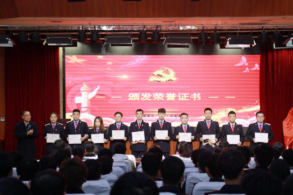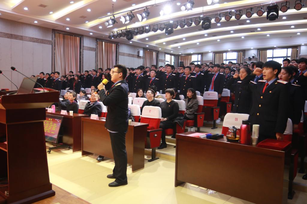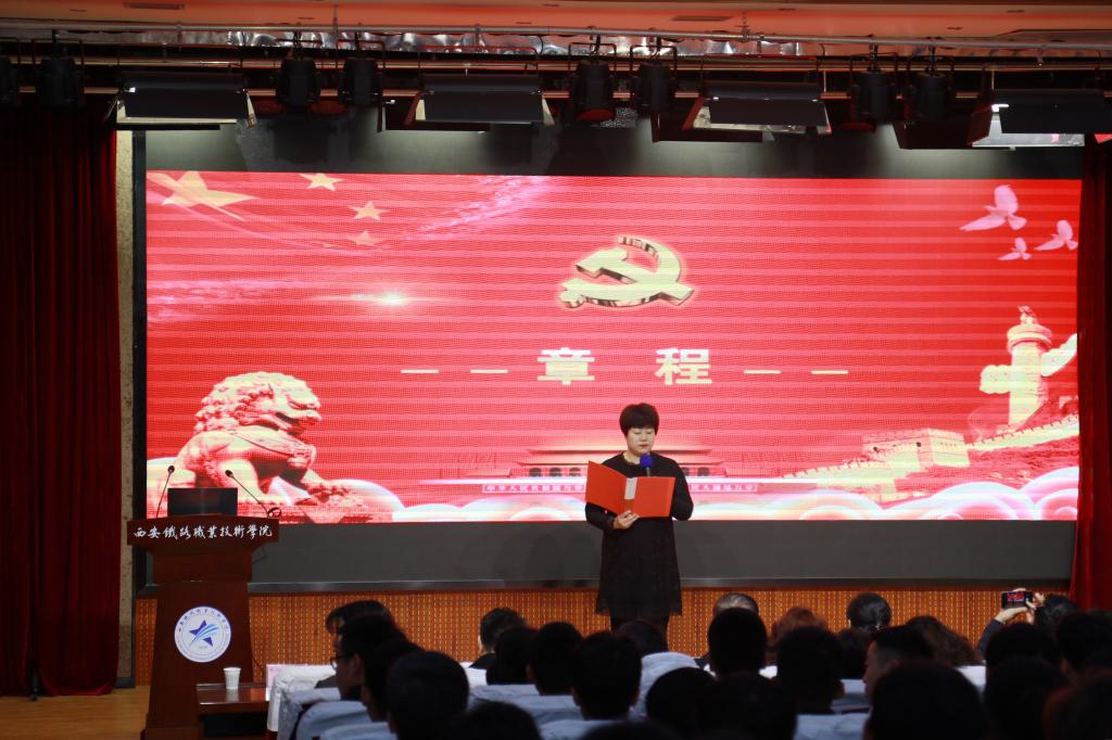 随后,思政部办公室副主任赵建英宣读“新时代学习社”章程,对学习社的成立宗旨、组织机构、学员制度等进行了详细介绍,并强调作为作为新时代铁路事业的建设者和接班人,要有新气象、新作为。由社长张尧同学带领学习社全体学员宣誓,望新老学员能深入了解学习社成立的初衷,不忘初心,砥砺前行。最后,由张治平向2019级学员代表尚超授社旗,旗帜是信念的载体,是老社员对新社员的传承,更是代表着对新一届学员的期望和祝福。
