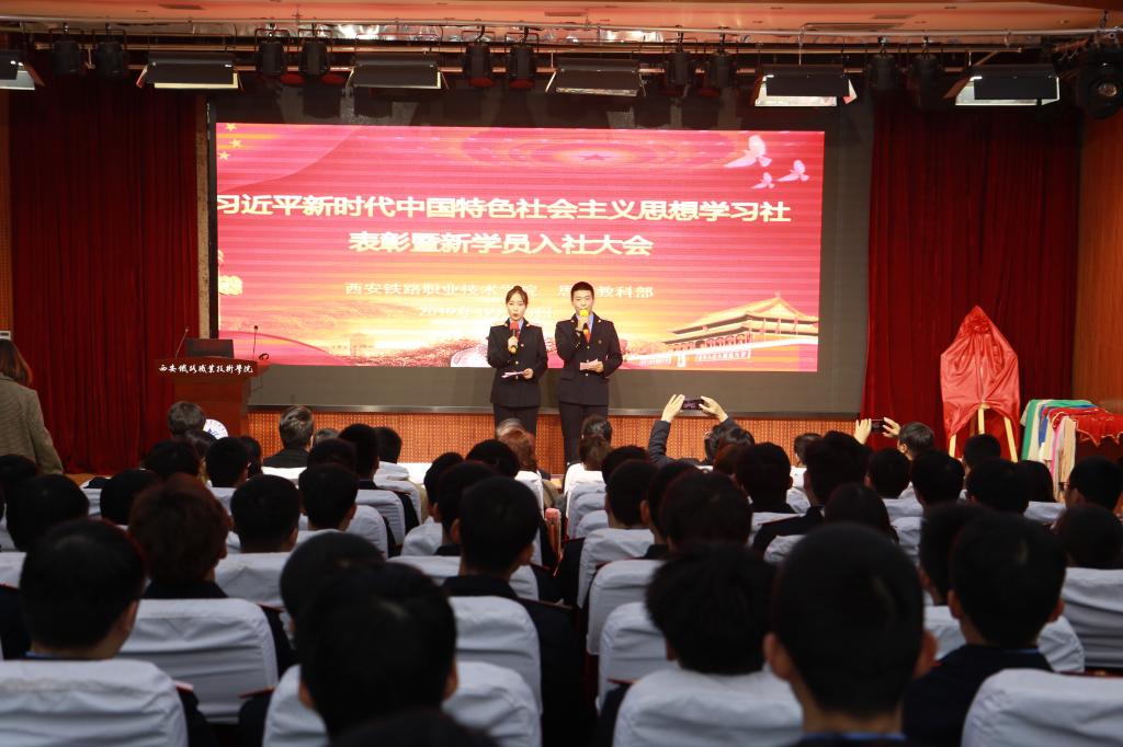 12月25日下午,思政部在港务校区举行“习近平新时代中国特色社会主义思想学习社2018级优秀学员表彰暨2019级新学员入社大会”。学院党委副书记邓耀斌、西安易俗社社长兼党支部书记惠敏莉、学院宣传部部长张家琪、团委书记张治平、电气工程学院党总支书记任建国、国际交通学院院长韩发强等出席活动,思政部全体教师与新时代学习社全体学员共同参加。