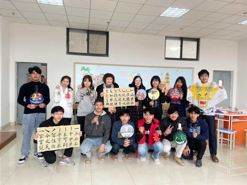 为响应国家"一带一路"倡议,推动中国与泰国的友好合作,促进泰国留学生学习领悟中国文化,提升城轨供电专业技术能力,基础部语文教研室胡蕊、潘馨培、王健、龙翔、王叙雅老师共同承担了城轨供电专业泰国留学生班《中国艺术》课程教学任务。经过三个多月的《中国艺术》教学活动,1月2日,本课程开展了学习成果展示和文化体验活动,推动了师生互动交流,进一步强化了学习效果。