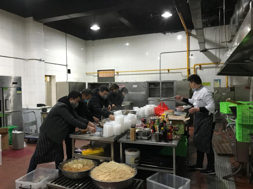 2月8日中午11:50,自强校区综合管理处制作完成的第一个午餐按时送到,合理有序地发到了每一个人的手中。适逢元宵佳节,晚餐还为每个人提供了醪糟元宵。