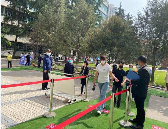 4月30日上午9:30,自强校区举行伙食工作演练。交通运输学院党总支书记仵崇智、电子信息学院党总支书记张伟敏及自强校区综合管理处职工,在校区学生餐厅两家餐饮公司员工的密切配合下,科学、有序的进行了学生就餐现场疫情防控演练。演练由自强校区综合管理处副处长马建萍现场指挥。