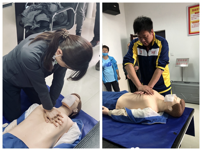 在西安市红十字会吴大夫和张护士长的耐心讲解与示范下,教师们认真聆听了心肺复苏和手动除颤的操作要点及注意事项,并在吴大夫的指导下体验了心肺复苏和手动除颤的操作。
