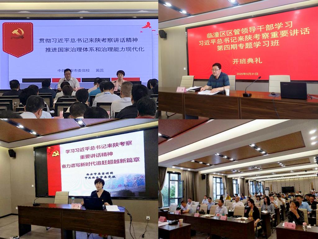 截至目前,校区已相继接待并完成了临潼区区管领导干部学习习近平总书记来陕考察重要讲话精神轮训班4期、市直机关党务工作者学习习近平总书记来陕考察重要讲话精神轮训班2期、西安市生态环境系统领导干部学习习近平总书记来陕考察重要讲话精神轮训班2期的培训任务,对临潼区区管干部、市直机关各党委、总支专职副书记、支部书记(副书记)、工委机关处级干部、生态环境系统处以上领导干部等约一千余人分期分批进行了培训。培训采取专题讲座、视频播放和学员分组研讨相结合的方式进行,为每位学员配发相关学习辅导资料。通过培训,学员们纷纷表示要进一步强化使命担当,增强“四个意识”,坚定“四个自信”,做到“两个维护”,在贯彻落实习近平总书记重要讲话精神上拿出实招取得实效,只争朝夕、真抓实干,用工作成效检验学习效果。