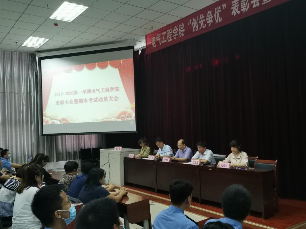 7月8日下午,电气工程学院召开2019-2020年度第一学期“创先争优”表彰大会。会议回顾和总结了本学期工作取得的成绩,表彰了一学期来学生中涌现的优秀集体和优秀个人。 电气工程学院党总支书记任建国、院长李栋,办公室主任张秀红、学工办主任马纪及电气工程学院120余名师生代表参加大会,大会由电气工程学院董燕老师主持。