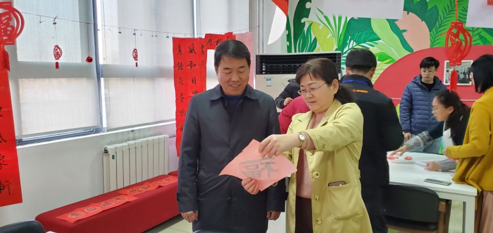 学院副院长安学武亲临活动现场,他表示,“迎新春 送春联 剪窗花”活动办的非常有意义,弘扬了中华优秀传统文化,同时也希望图书馆提高资源利用率,不仅仅要做书的管理者,更要做书的传递者和推送者,营造人在书中,书在人旁的文化氛围,打造智慧型图书馆。