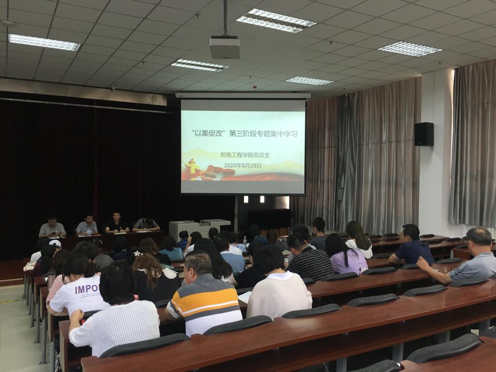 为进一步巩固肃清赵正永流毒和以案促改专题学习教育阶段性成果,切实落实从严治党要求,充分发挥理论学习更好指导实践工作作用,8月29日下午,机电工程学院党总支组织召开了“以案促改”第三阶段专题集中学习会,全体党员参加了学习研讨,会议由党总支书记仵崇智主持。