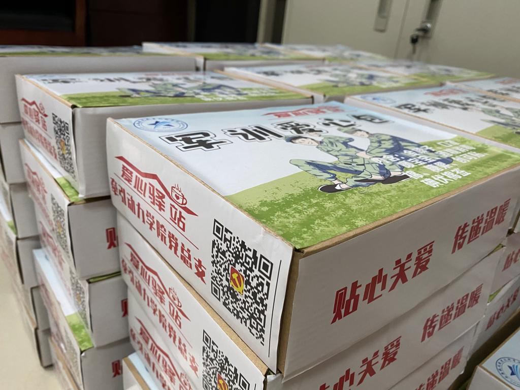 爱心驿站是牵引动力学院党总支面向全院学生的爱心品牌,秉承着发扬奉献、友爱、互助、进步的志愿服务精神,积极组织各类爱心活动,旨在让最有需要的同学,在爱心驿站得到及时的贴心帮助。这次送到周至训练基地的军训爱心包里,有酒精消毒棉、创可贴、碘伏棉签等,以应急处理伤口;也有保护喉咙的金嗓子喉宝、保暖防寒的暖宝宝、防止低血糖的糖果以及防疫用品医用口罩等。