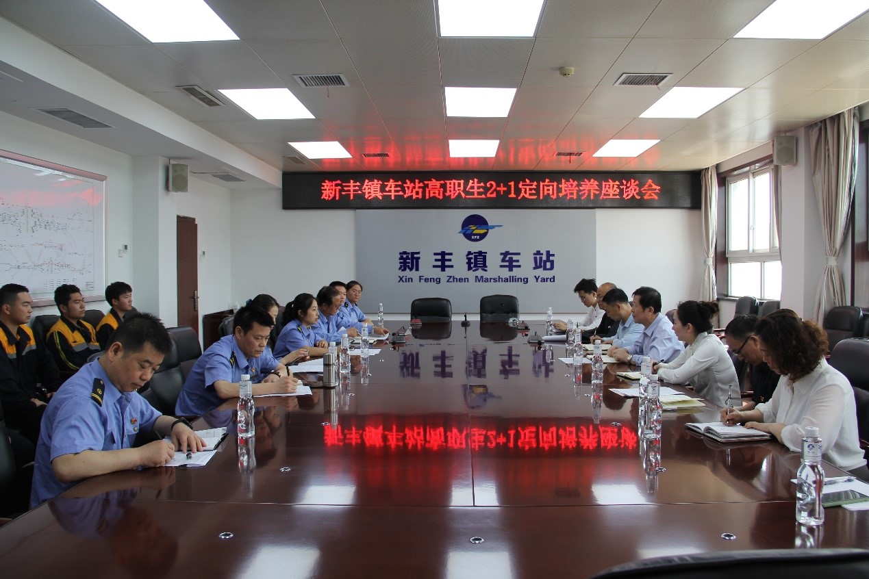 座谈会上,党毅对徐小勇一行表示欢迎,介绍了新丰镇车站的总体概况,编组站型和担当的解编任务,重点介绍了编组站综合自动化系统(SAM系统)的应用对岗位综合能力提出的新要求。王唯东介绍了新丰镇车站对校企双方“2+1”联合培养跟班实习生的总体安排,劳人科副科长姬荣介绍了对实习学生的岗位安排,食宿安排等接收相关事宜,职教科助理工程师王亚玲介绍了对实习学生的车务段、车站、班组三级培训内容,现场跟班教学计划和安全培训计划,上行运转车间和调度车间负责人分别介绍了车间、班组对实习学生的实习工种安排和具体培训计划。徐小勇对新丰镇车站表示感谢,希望通过此次调研深化产教融合,推进校企合作,在学校专业升级和数字化改造、人才培养、教学团队建设等方面进行深入合作。同时,徐小勇希望实习生端正态度,珍惜现场实习机会,高度重视安全问题,确保实习过程中的行车、设备和人身安全,虚心向师傅学习,通过技能鉴定考核,顺利完成实习任务。