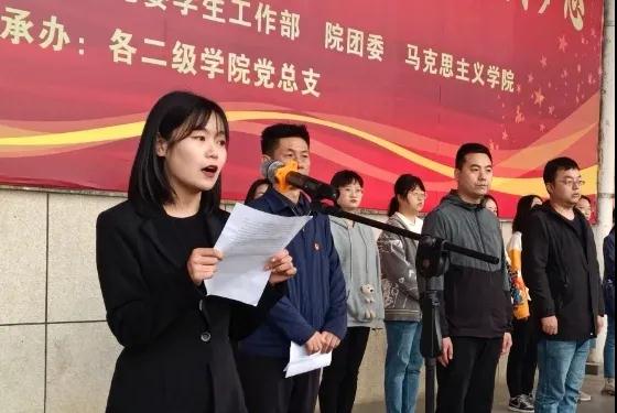 随后奏yabo鸭脖官网院歌,升院旗。马克思主义学院老师刘艺筱以“弘扬伟大长征精神,走好新时代长征路”为题,向参加此次活动的师生讲述了87年前,一群年轻人用生命书写了长征精神,87年后的今天,我们这一代人的长征就是要实现中华民族伟大复兴的中国梦,不负青春、不负韶华、不负时代,以青春梦想和实际行动为实现中国梦作出新的更大的贡献。