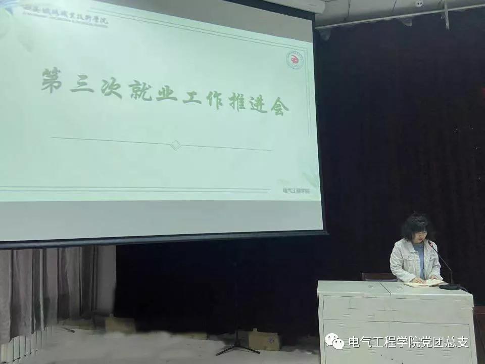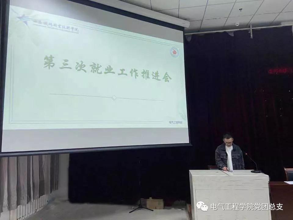 为应对复杂严峻的毕业生就业形势,稳步推进毕业生就业工作,3月31日下午,电气工程学院党总支第三次就业工作推进会在电气楼101阶梯教室召开,电气工程学院党总支书记和晋秦、学工办主任马纪和全体辅导员班主任参加会议,共同分析当前就业形势,谋划部署下一阶段重点工作。会议由学工办主任马纪主持。