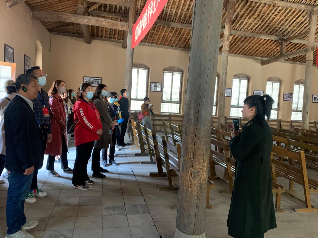随后来到杨家岭革命旧址参观学习,一行人参观了中共中央机关办公地点和我党第一个自己修建的中央大礼堂。中国共产党第七次全国代表大会和著名的延安文艺座谈会都在这里顺利召开。随后又参观了毛主席、刘少奇、朱德的旧居,了解了延安时期在艰苦的条件下的水乳交融的党群干群关系。