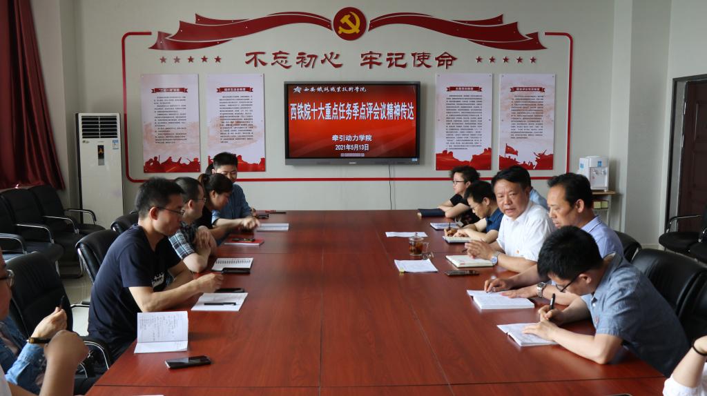 5月13日中午,牵引动力学院在701会议室召开了学校十大重点任务季点评会议精神传达专题会。牵引动力学院院长李益民、总支书记李贞伟、副院长林辉、各专业带头人、教研室主任、副主任、学工办主任、组织员及办公室全体人员参加了会议。会议由院长李益民主持。