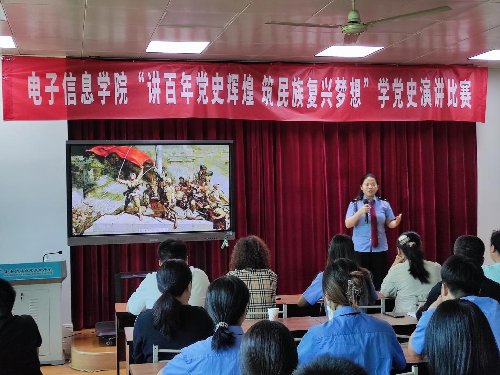 为庆祝中国共产党成立100周年,走深走实推进党史学习教育,进一步传承发扬党的光荣传统和优良作风,让党史学习教育深入校园,电子信息学院于5月17日下午在教学楼407举办了“讲百年党史辉煌,筑民族复兴梦想”学党史演讲比赛。出席本次活动的有电子信息学院党总支书记张伟敏、学工办副主任薛明、辅导员、班主任以及2019级百余名学生。