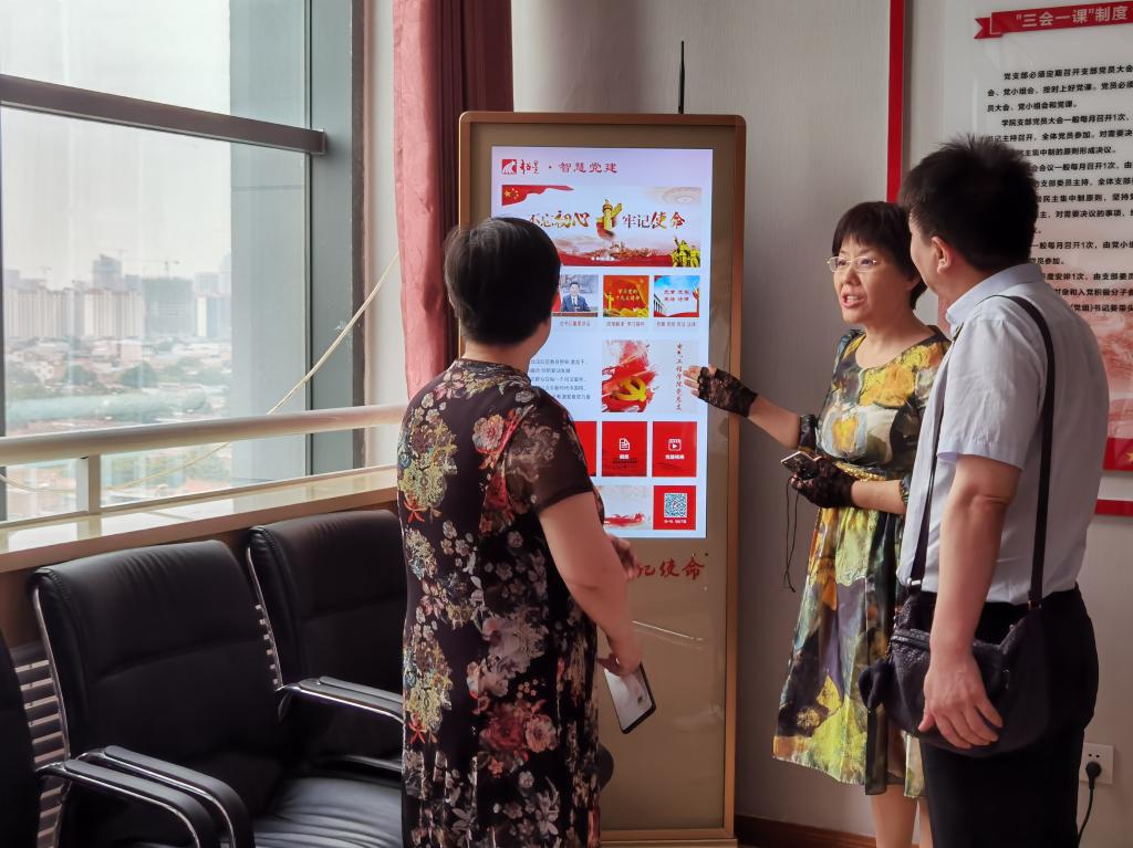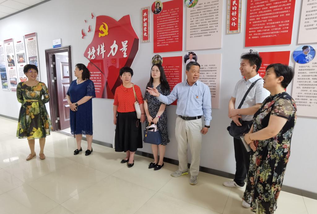 桑利娥一行在景延鹏的带领下来到电气工程学院8楼,在电气工程学院党总支书记和晋秦的陪同下参观了学院思政文化长廊,参观了思政文化长廊的旗帜引领、精神传承、榜样力量、群英谱、对标自检、筑强堡垒、党员承诺、党员积分等板块内容。在师生政治生活馆前,和晋秦对建设师生政治生活馆的初衷、功能、作用和运行机制,以及党员积分制的具体做法和取得的成效进行了详细介绍。桑利娥及西安医学院马克思主义学院来访教师对鸭脖党建创新工作和党建品牌给予了高度评价。