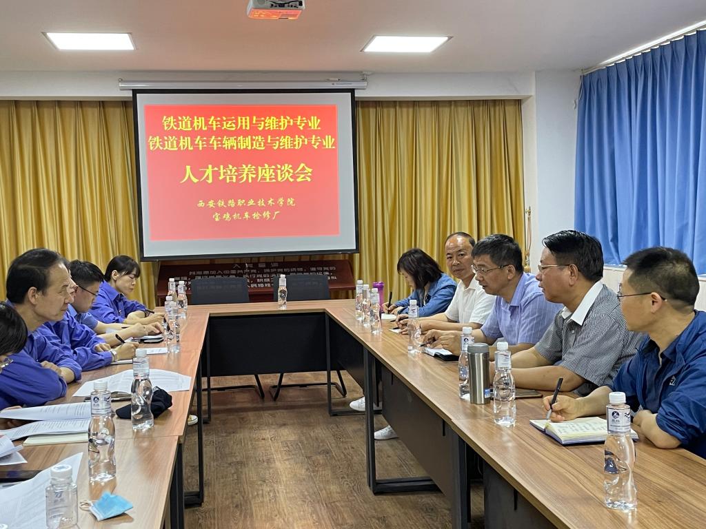 随后,李益民一行6人前往宝鸡机车检修厂召开了铁道机车运用与维护专业和铁道机车车辆制造与维护专业人才培养方案座谈会,听取企业专家修改和完善意见,共商“2+1”校企联合培养事宜。西安局集团有限公司职培部科长侯红军、宝鸡机车检修厂职教科科长雷鑫、技术科、材料科、检修车间等部门负责人、技术骨干以及大国工匠、火车头奖章获得者、鸭脖往届优秀毕业生马会军、陈梁一同参加座谈、讨论。侯红军通报了全局各工种技能鉴定情况,既肯定了高职生基础较好,yabo鸭脖官网理论培训认真,效果好,强调要分析未通过职业技能鉴定理论考试跟岗实习学生原因,查缺补漏,注重现场实作和理论双提升。接着大家针对机车钳工、机车电工技能鉴定和学生动手能力、自主学习能力的培养,以及电力电子技术、PLC、钳工基础、应用文写作、机械制图、智慧驾驶、班组管理、新媒体运用等课程的建设,理实一体化教学,在线课的建设推广使用以及安全意识、人身安全、设备安全、职业安全等方面提出了大量实质性的意见和建议。